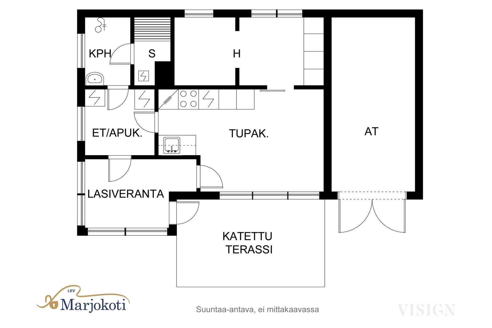 Huoneistoselitelmä | Tupa, mh, s, et, lasitettu veranta, at |