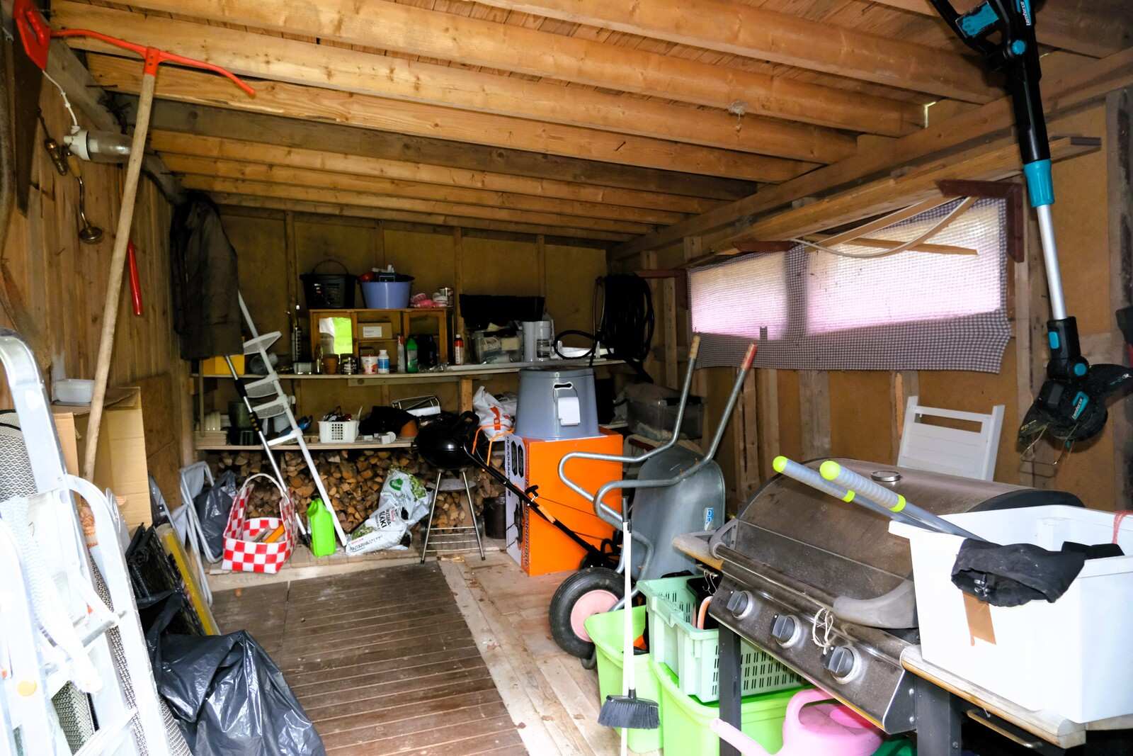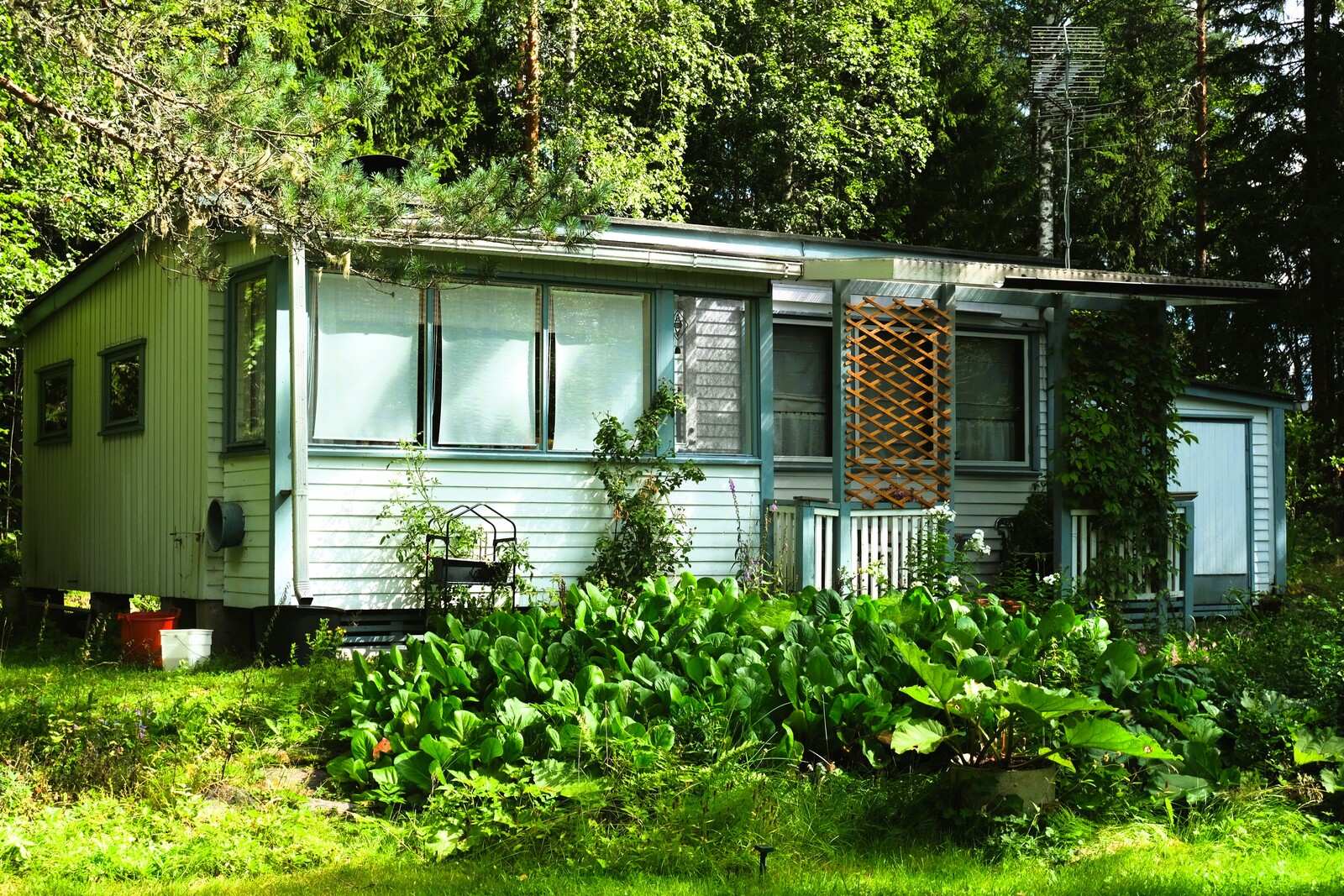Erillinen vierasmökki sähköineen on oiva paikka ystäville tai sukulaisille, ja autotalli toimii loistavasti varastona.