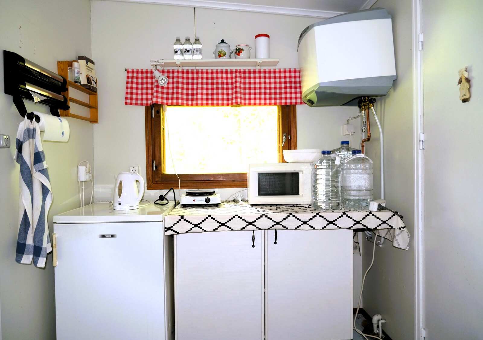 Keittiön varustus | Jääkaappi ja pakastin: jääkaappi Lattia: lauta Liesi/uuni: keittolevy, muu |