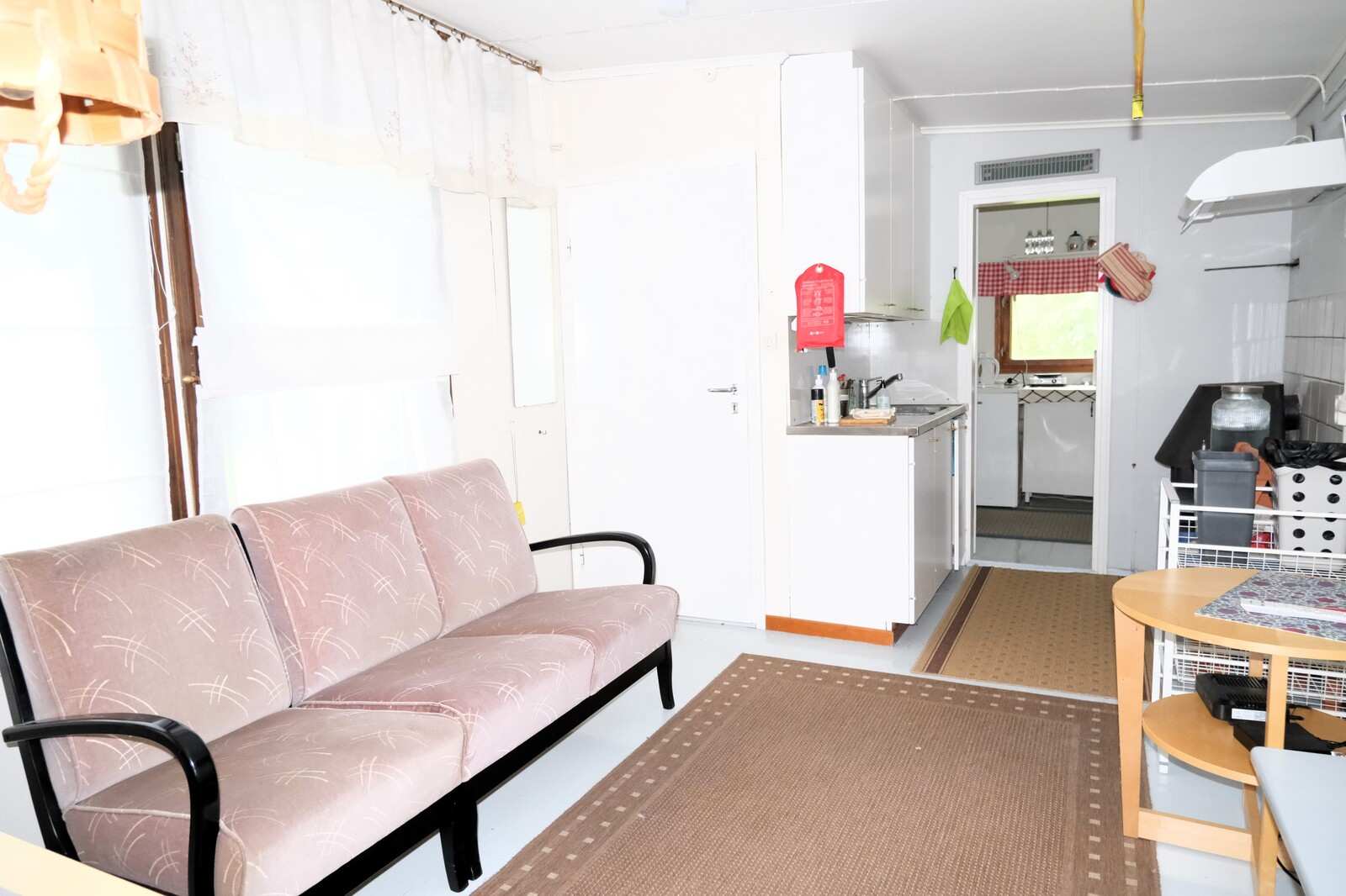 Tilojen kuvaus | Iso lasitettu veranta, josta lisätilaa oleskeluun ja säilytykseen |