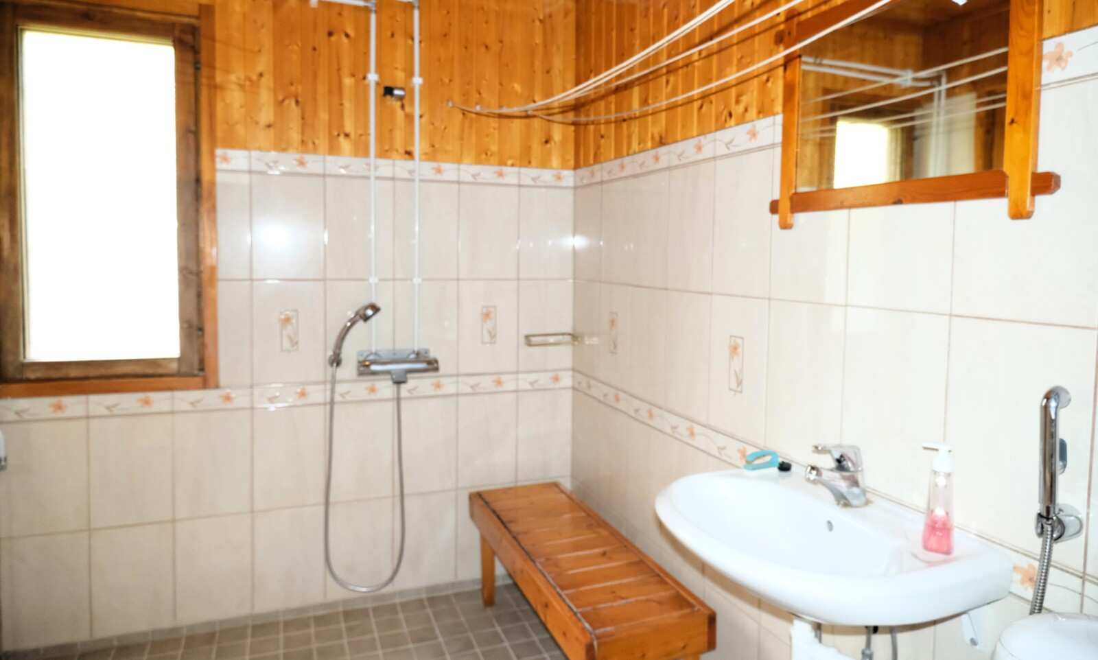 | Kylpyhuone | Varusteet: lattialämmitys, wc-istuin, suihku, peili, kiinteät valaisimet Seinät: kaakeli, puolipaneeli Lattia: laatta |