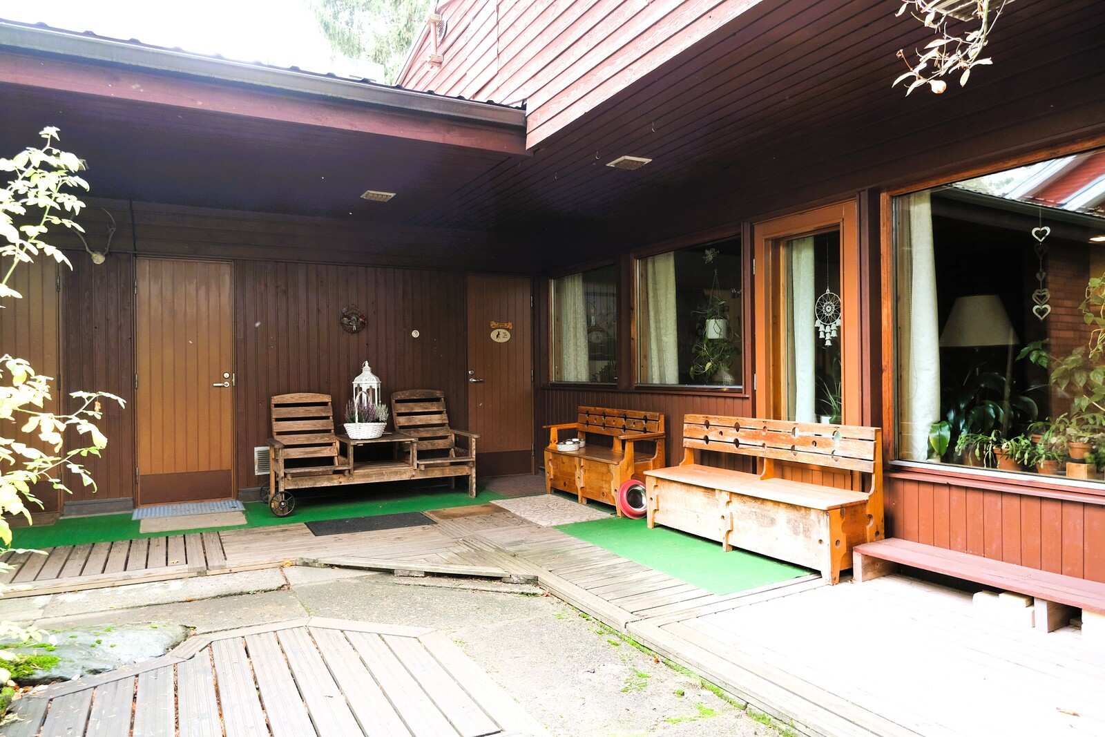 Kulmatontti, suojaisa sisäpiha ja iso terassi, jossa nautit kesäpäivistä katseilta suojassa.