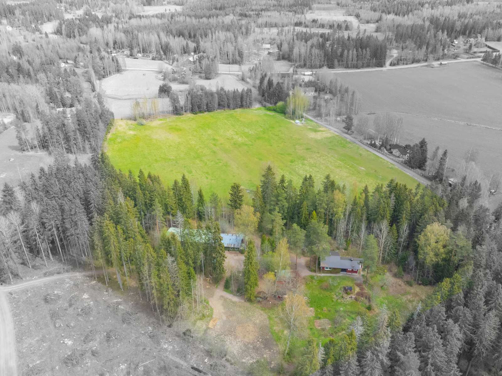 Viljelymaata, hallitilaa, puutarhaa ja pieni punainen tupa!