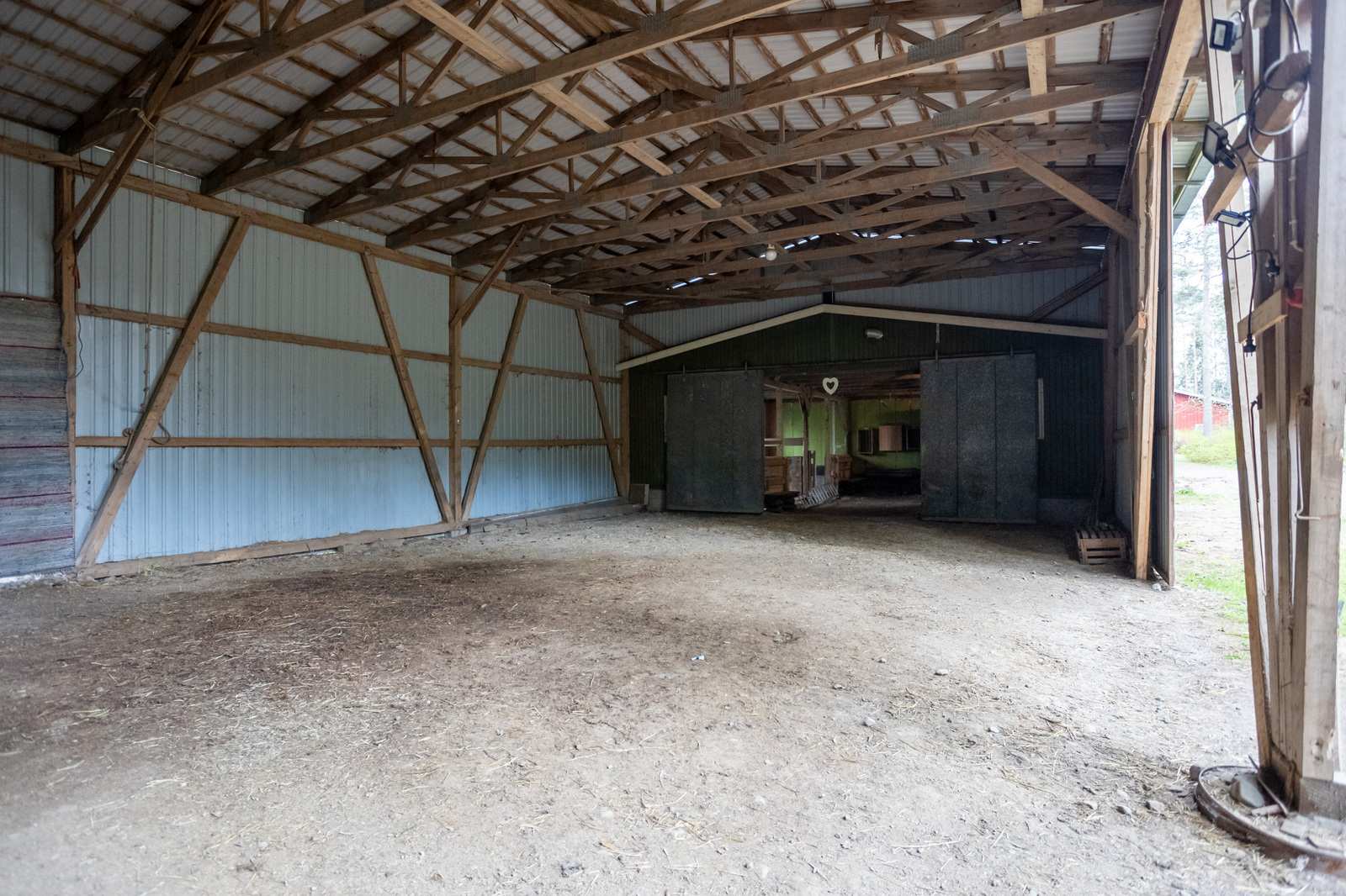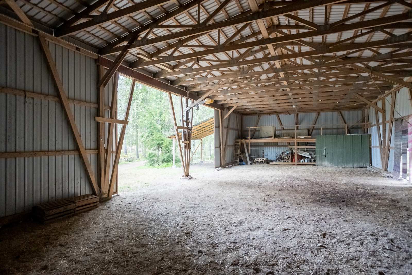 Todella iso monien käyttömahdollisuuksien hallirakennus, jossa 130 m2 varasto/eläinsuoja sekä 180 m2 traktori/autohalli liukuovin. Rakennus on kylmää tilaa. Kaksi kylmäkellaria säilyttää vuotuisen sadon.